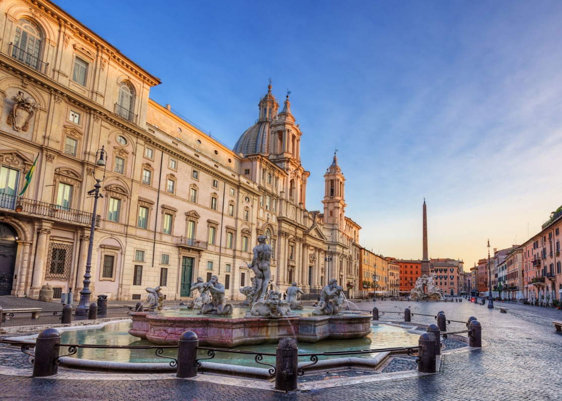 Rome ne serait pas vraiment Rome sans ses places. Ornées de fontaines, animées, bordées de terrasses et de restaurants elles sont l’âme de la vie romaine. La piazza Navona est remarquable. Sur la piazza Rotonda ne manquez pas la visite du Panthéon avec sa coupole ajourée d’un puit de lumière. Enfin, la tradition veut que l’on jette une pièce dans la fontaine de Trévi pour faire un vœu.